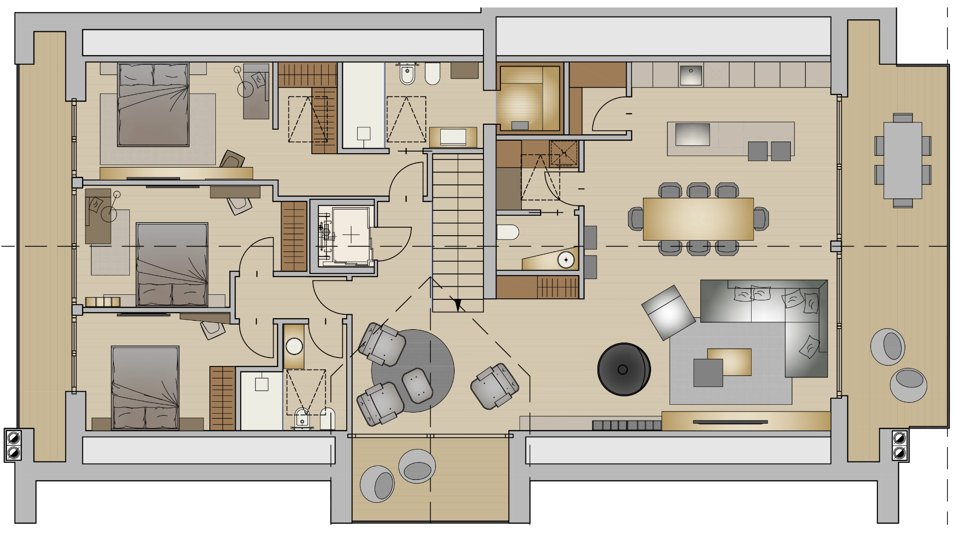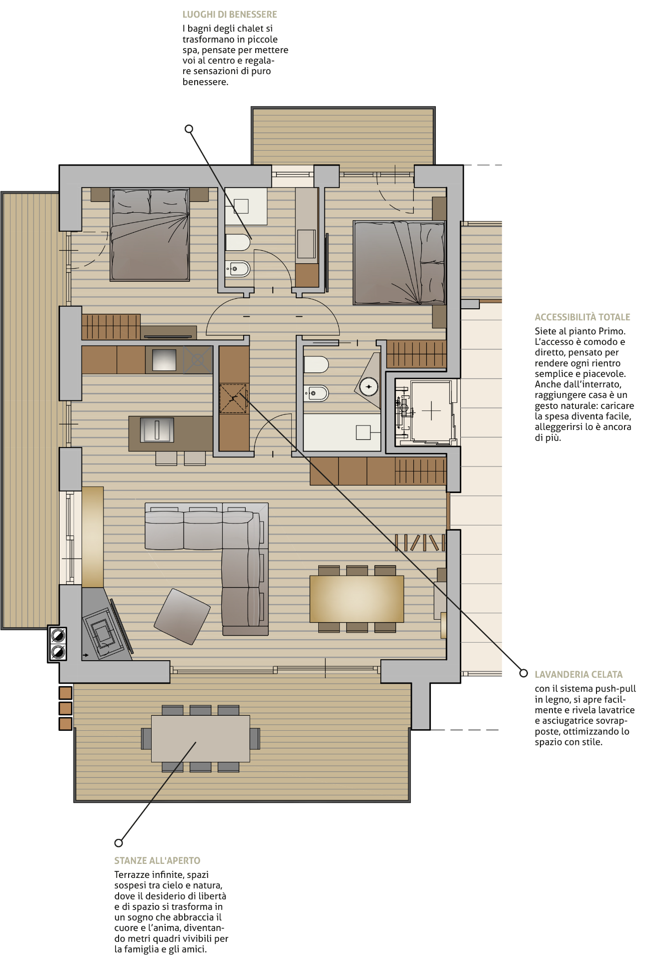 Chalet con 2 camere e 2 bagni con Terrazze panoramiche servito da ascensore
